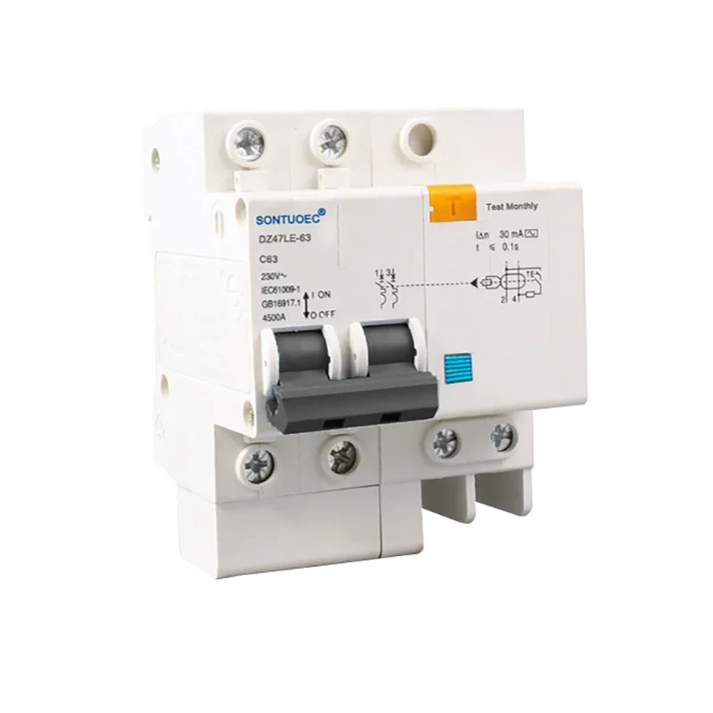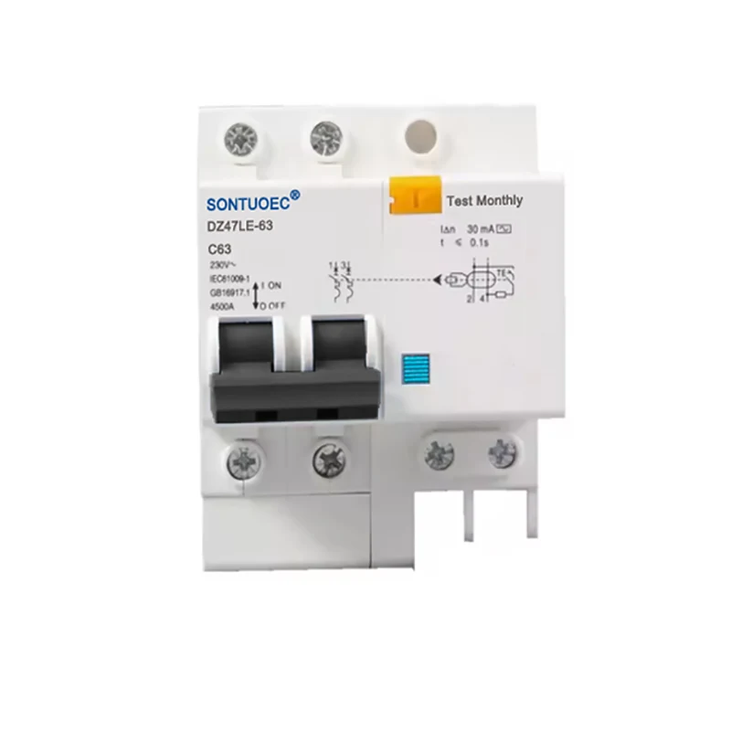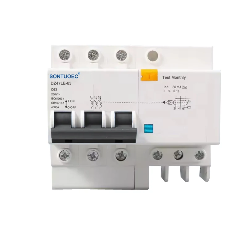 DZ47LE-63 series electronic earth leakage protection circuit breaker is suitable for single phase residential circuit of AC 50Hz/60Hz, rated voltage 230V, and rated current 6A~63A; 400V for three phase circuit of AC 50Hz/60Hz. It can protect circuit form overload and short circuit. This product has advantages of small volume, high breaking capacity, live wire and zero line are cut off at the same time, also protecting person from electric leakage shock in the case of the fire wire and zero line connected reverse.