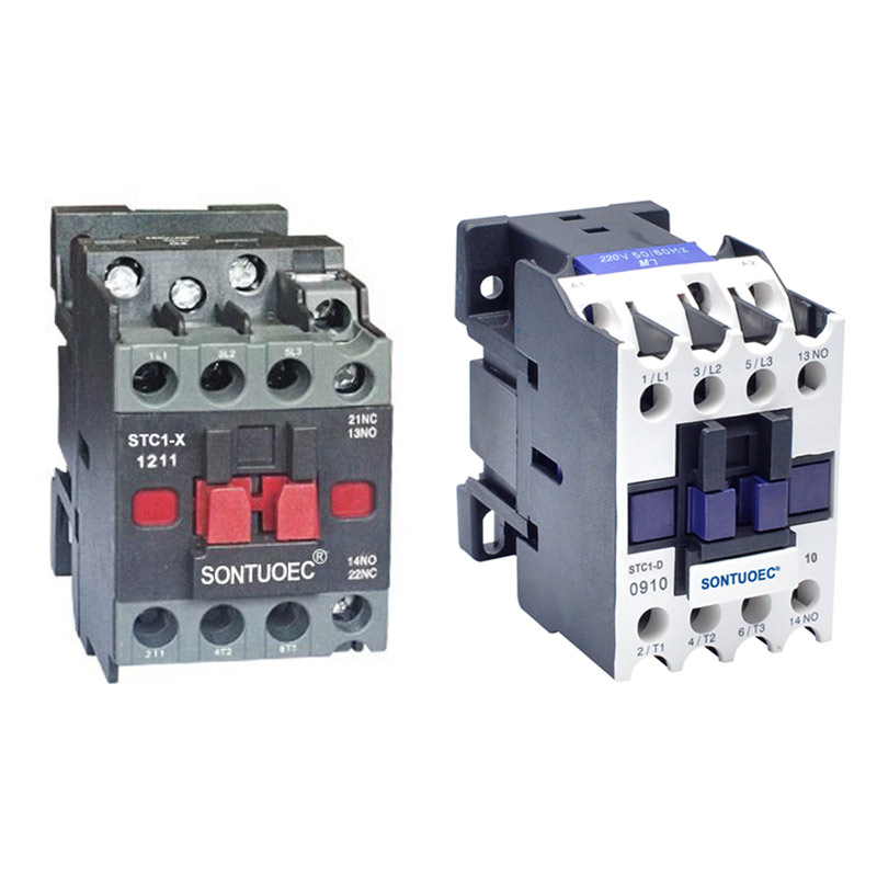 SONTUOEC high quality electronics contactor is mainly applied in the circuits the rated voltage up to 660V, AC 50Hz or 60Hz, rated current up to 95A, for making & breaking, frequently starting & controlling the AC motor. Combined with the auxiliary contact block, timer delay & machine-interlocking device etc, it becomes the delay contactor, mechanical interlocking contactor, star-delta starter. It turns into an electromagnetic starter when it works together with a matching Thermal Relay, which can protect the overload circuit. The Contactor is produced according to IEC60947-4-1.