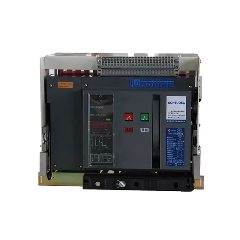 Intelligent air circuit breaker is a kind of electrical equipment that can automatically recognize and respond to circuit abnormalities and quickly cut off faulty circuits to protect equipment and personal safety. It not only performs traditional circuit breaker functions, such as overload protection, short circuit protection, etc., but also realizes real-time monitoring, fault warning and remote communication through built-in sensors and control systems.