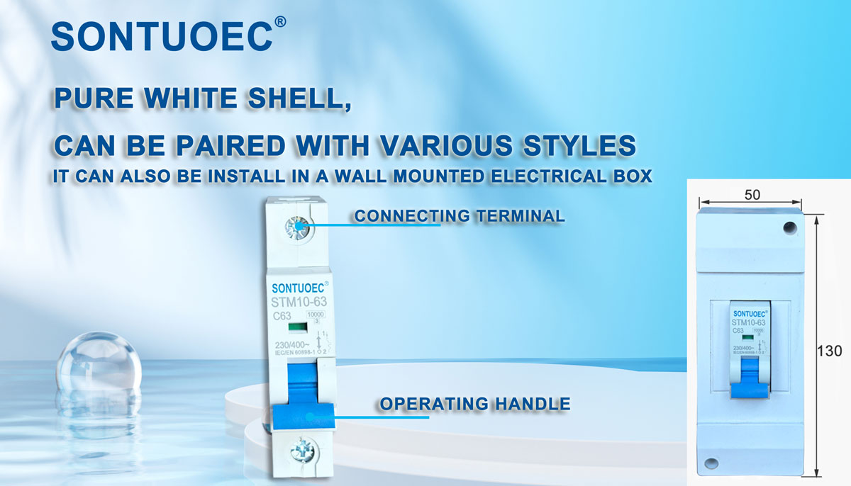 SONTUOEC is one of the Chinese suppliers/manufacturers specializing in the production of various small electrical appliances STM10-63 Series high breaking miniature circuit breaker has the features of structure advanced, performance reliable, breaking capacity high, appearance elegant and its shell and parts are made of material with impact resistance, strong flame-retardant feature. It is suitable to power system of 50 or 60 frequency, Ue 400V and below, Ui 63A and below. It is mainly applied at office building, residence, for lighting, power distribution and overload and short circuit protection of equipment. Normally, it also can be used as the not frequent transfer of power system. It conforms to the standards IEC60898.1 and GB10963.1