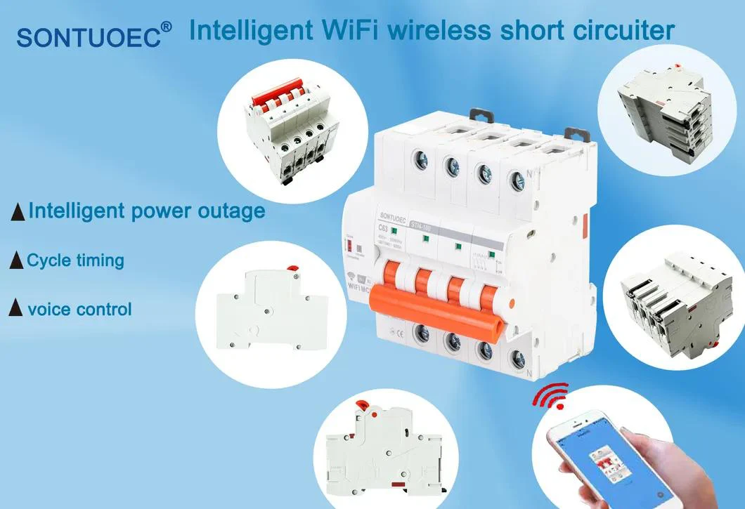 STI4-100WF series WiFi Smart Circuit Breaker is a multi-function intelligent switch that integrates the functions of electricity metering,overload, short circuit, over and under voltage, leakage, over-temperature protection, remote opening and closing, timing,network communication and so on. It can be widely used in smart power management places such as commerce, agriculture,schools, hospitals, hotels, entertainment places, stations, cultural relics protection units, urban street lamp management andcontrol, and can also be widely used in energy consumption management in industrial and mining enterprises, office buildings and other places.STL7-100WF has the function RS485 and over or down voltage protection function.